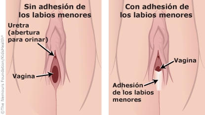 - Los labios no se le separan tal y como se esperaba (en un plazo de 2 meses si se utiliza una crema con estrógenos o esteroides, o antes de la pubertad si no se utiliza ningún medicamento).