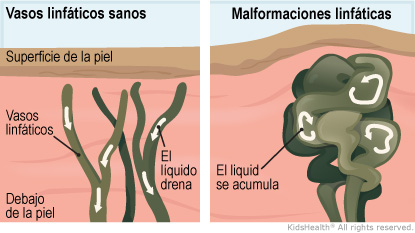 El sistema linfático es una red de tubos que recolecta linfa del tejido corporal y mantiene el equilibrio de los fluidos corporales. La linfa es un líquido transparente de color amarillo pálido que se secreta de los vasos sanguíneos para llegar a todo el cuerpo. El sistema linfático retorna la linfa al torrente sanguíneo. Las malformaciones linfáticas crecen porque la linfa de los vasos anormales no puede drenarse bien y por lo general están separados del sistema de vasos sanguíneos normales. Esto hace que se hinchen, lo que se conoce como exacerbaciones.