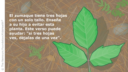 - Enséñele a identificar la hiedra, el roble y el zumaque venenosos, para que pueda mantenerse alejado de ellos (debería ser especialmente precavido con las plantas que tengan las hojas brillantes).