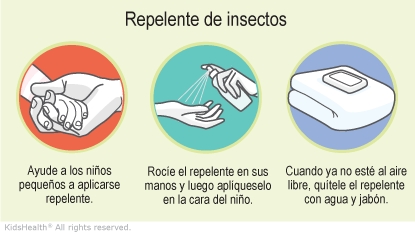 - No coloque repelente de insectos en las manos de los niños pequeños porque podrían llevárselas a la boca.