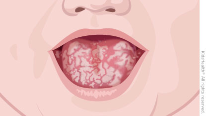 Un bebé con muguet tendrá la piel de las comisuras de la boca agrietada o placas blanquecinas en los labios, la lengua o la cara interna de las mejillas, con un aspecto similar al del requesón, pero sin que se pueda limpiar.