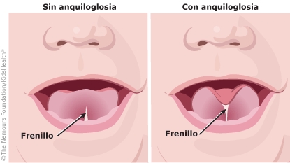A veces, el frenillo puede ser demasiado corto o estar demasiado tenso. El frenillo se puede ubicar en la parte delantera de la lengua, haciendo que la punta de la lengua quede pegada a la base de la boca.