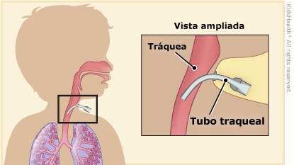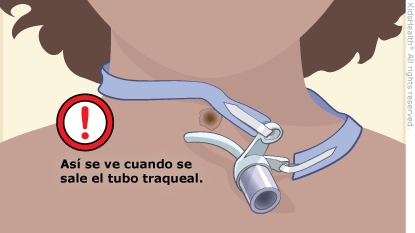 Si a su hijo se le sale el tubo de traqueotomía del estoma, recolóquelo tal y como se lo ha indicado el equipo médico. Si no logra recolocarle el tubo, colóquele un tubo nuevo tal y como se lo haya mostrado el equipo médico.