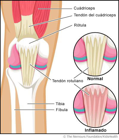 La rodilla del saltador es una lesión del tendón rotuliano. El tendón rotuliano es el tejido en forma de cordón que une la rótula a la tibia.