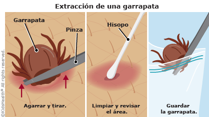 - Tira con fuerza y firmeza de la garrapata hasta que se te separe de la piel. Si una parte de la garrapata permanece unida a la piel, no te preocupes. En algún momento saldrá. Pero llama a tu médico si notas alguna irritación en el área o síntomas de la enfermedad de Lyme.