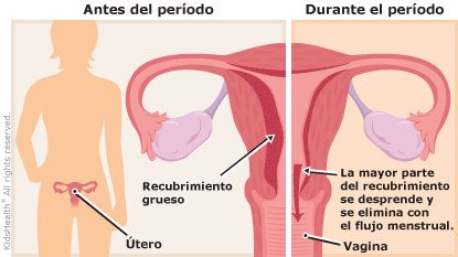 La menstruación ocurre debido a cambios en las hormonas del cuerpo. Las hormonas son unos mensajeros químicos. Los ovarios liberan las hormonas femeninas estrógeno y progesterona, que hacen que se desarrolle el revestimiento interno del útero (o matriz). Este revestimiento está preparado para que un huevo fecundado (un óvulo que se ha unido a un espermatozoide) se adhiera a él y se acabe convirtiendo en un bebé. Si no hay ningún huevo (o cigoto) fecundado, se rompe ese recubrimiento y el tejido uterino sale por la vagina en forma de sangre. Este mismo proceso ocurre una y otra vez.