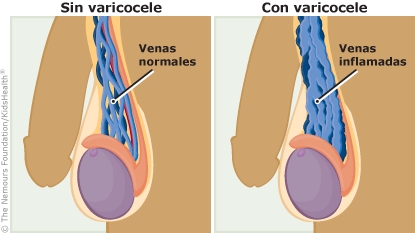 Pero, a veces, estas válvulas fallan. Cuando esto ocurre, parte de la sangre fluye en la dirección opuesta. Esta sangre se puede acumular en una zona y esto hace que la vena se estire y agrande, o se hinche. Esto recibe el nombre de "varicocele".