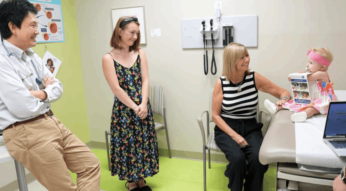 Penelope and her family meet with Dr. Asai (left) at a follow-up appointment in Akron. The appointment marked five-months post-transplant for Penelope.