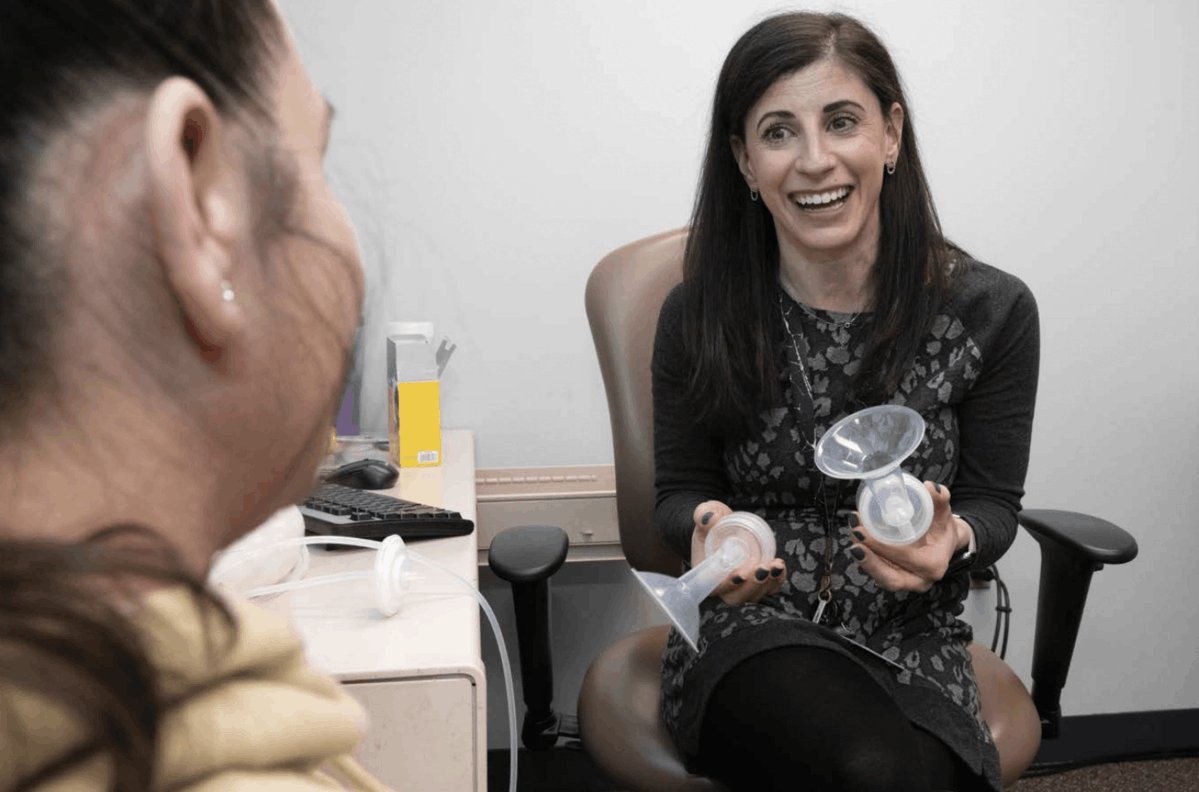 A: This is one of the most challenging and one of my favorite parts of this role as a provider. Having a baby is hard, and struggling with feeding brings a whole new level of emotional stress. With 90-minute appointments, that allows a lot of time for feelings to bubble up. I often share my own story with families, as I find personal experience a valuable tool. I like to let my patients know that this is hard, but we have tools to work through it together. I hope to leave my families with a sense of peace and control. Their feeding plan should be manageable once they go home and personally designed for them. I share two goals with families: Baby needs to be fed, and everyone needs to be happy. Each of these is equally important.