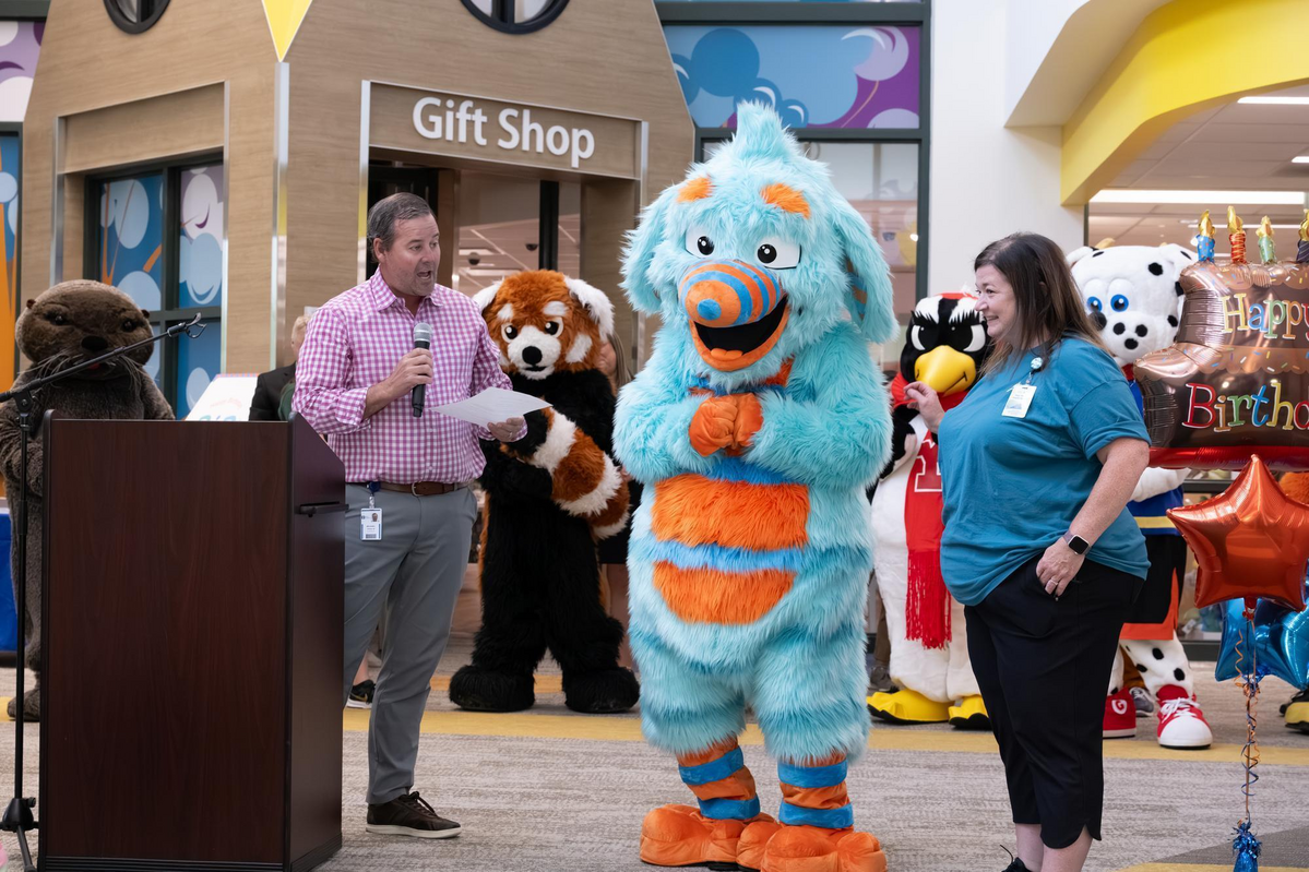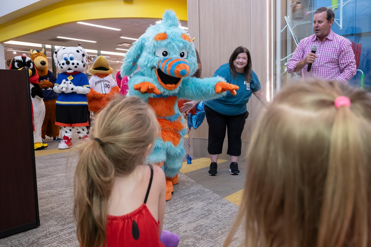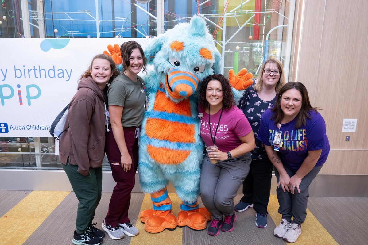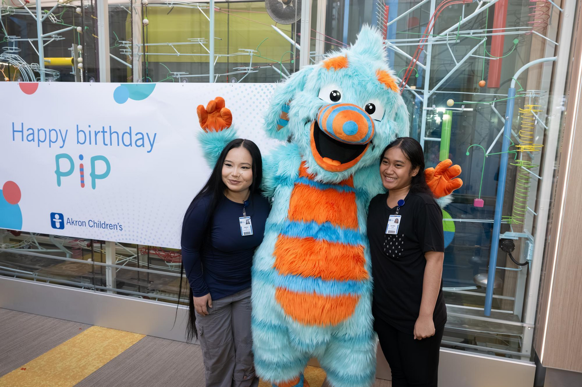Fans stopped by to meet Pip and learn more about how Pip personifies the hospital's efforts to promote more childhood. Several local mascots were there to celebrate, as well as members of the hospital's Doggie Brigade. There was a photo booth, snacks, giveaways and, most importantly, a rousing rendition of Happy Birthday!