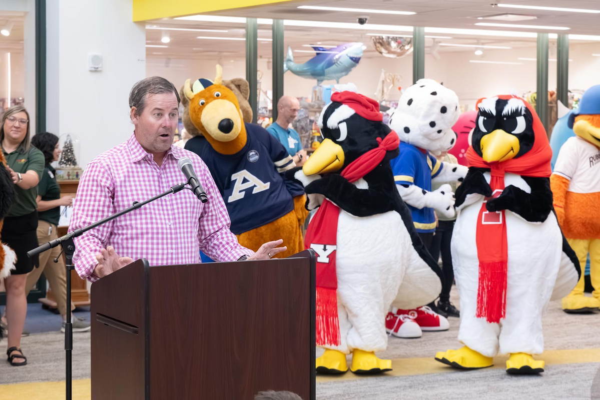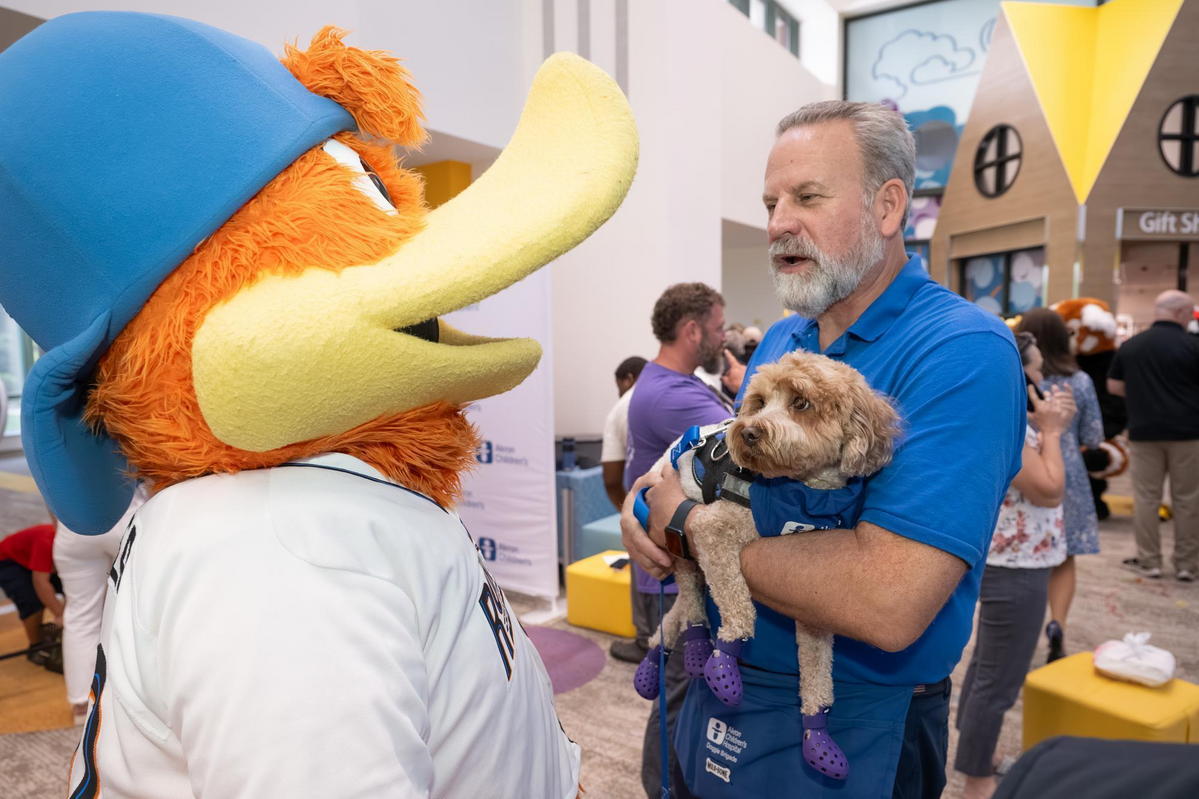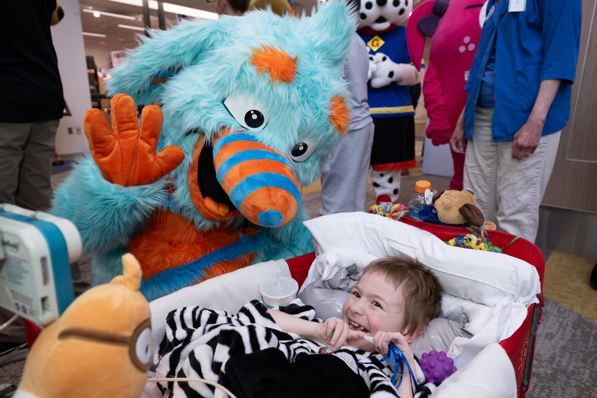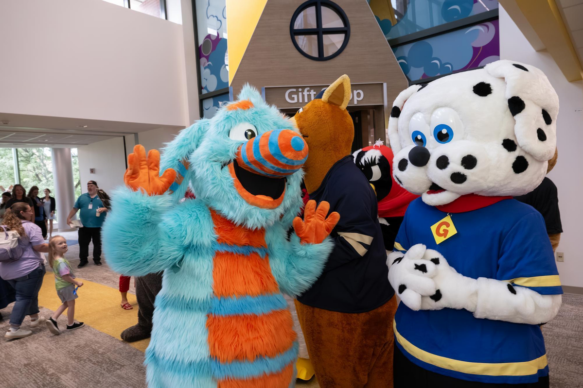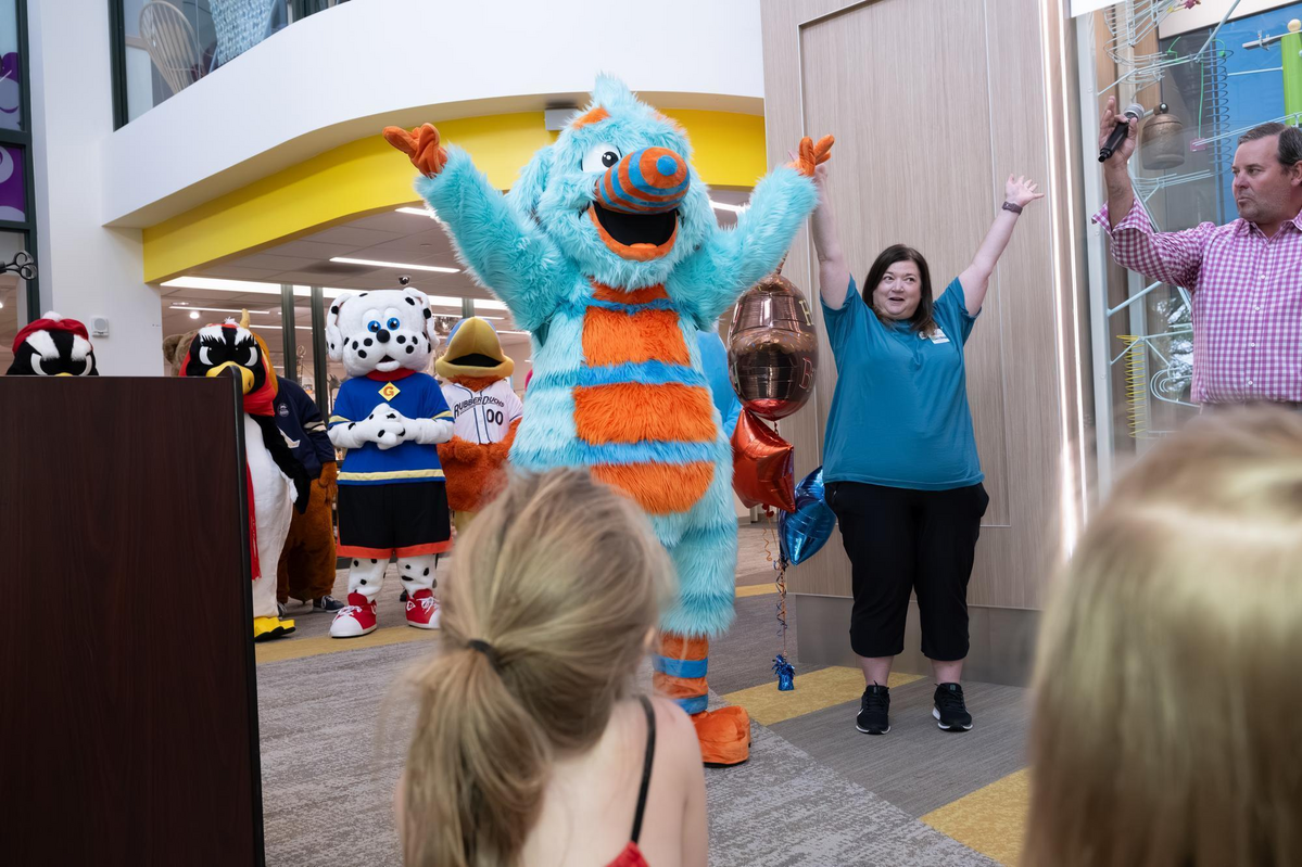 Fans stopped by to meet Pip and learn more about how Pip personifies the hospital's efforts to promote more childhood. Several local mascots were there to celebrate, as well as members of the hospital's Doggie Brigade. There was a photo booth, snacks, giveaways and, most importantly, a rousing rendition of Happy Birthday!