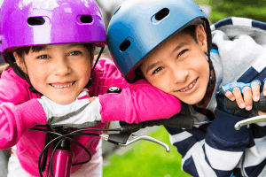 Akron Children's recommends that every member of your family wears a helmet for every ride. More children ages 5 to 14 are seen in ERs for injuries related to biking than any other sport, and helmets can reduce the risk of severe head injuries by 88 percent. Kids are more likely to wear helmets if their parents wear a helmet themselves. Not only is helmet wearing a safe way to keep your kids safe--it's the law! In the City of Akron every child under age 16 is required to wear a bicycle helmet.