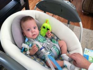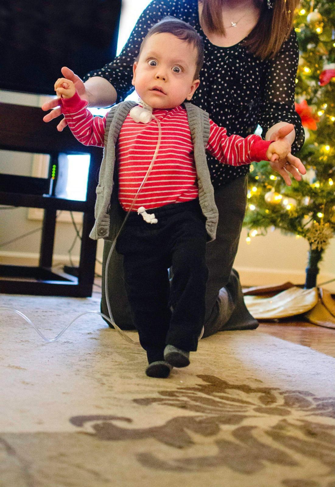 Donovan came home from the NICU with a tracheostomy and a feeding tube. He required mechanical ventilation and supplemental oxygen for a few years in the home as his lungs continued to grow and heal. It was later discovered that, as a result of Donovan's prolonged intubation in the NICU, his airway had become severely narrowed. He was diagnosed with grade IV subglottic stenosis, which meant that his airway was far too narrow to allow for him to breathe on his own without a trach tube keeping things open.